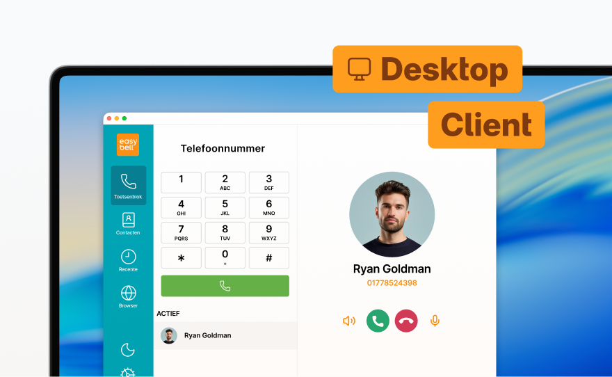 Met de Easybell desktopcliënt voer je gesprekken eenvoudig vanaf je computer. Geen extra apparaten of vaste telefoons nodig!
