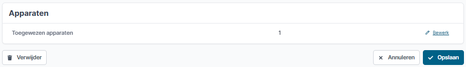 Als er al apparaten zijn toegewezen, kunt u deze hier ook snel bewerken of de toewijzing verwijderen.