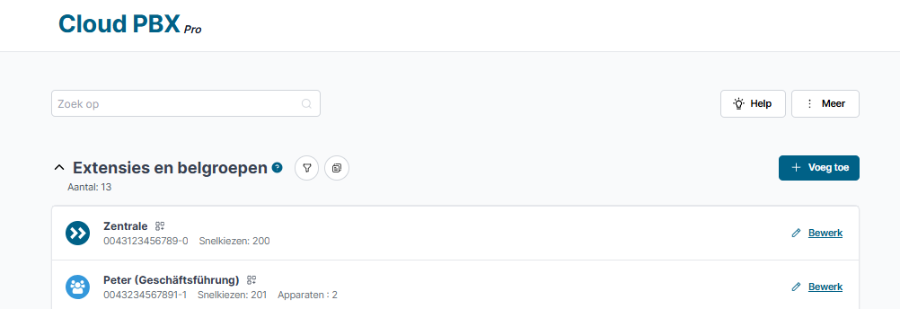 Als u extra apparaten wilt aanmaken, lees dan "Eindapparaten aanmaken in het cloud telefonie".