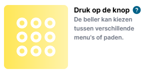 De module “Druk op de knop” kan worden gebruikt om een klassiek keuzemenu in te stellen zodat een beller zijn doorschakeling kan selecteren via verschillende nummertoetsen.