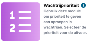 Het audiobestand dat wordt afgespeeld aan de beller kan worden geselecteerd in de wachtrijmodule en de signalering tussen de agenten kan prioriteit krijgen.