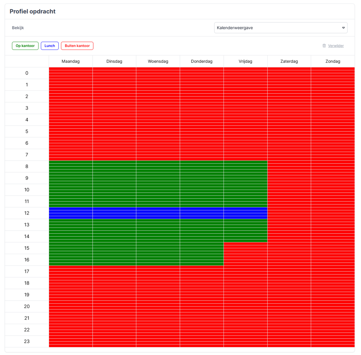 Om dit mogelijk te maken, worden verschillende profielen gebruikt. Deze worden dan net als een dienstregeling over de week verdeeld.