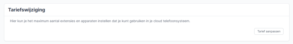 Als je alleen de extensie grootte van je Cloud telefonie abonnement wilt wijzigen, is het voldoende om meer extensies + eindtoestellen aan te maken dan zijn inbegrepen in het huidige abonnement. Het is ook niet mogelijk om meer extensies en toestellen toe te voegen aan de Basic Cloud telefonie, omdat de gratis versie van de Cloud telefonie beperkt is tot vijf extensies en vijf toestellen. Als je het aantal extensies of eindtoestellen van de Basic versie wilt verhogen, wijzig dan eerst uw abonnement naar Classic of Pro en verhoog indien nodig het aantal extensies of eindtoestellen.