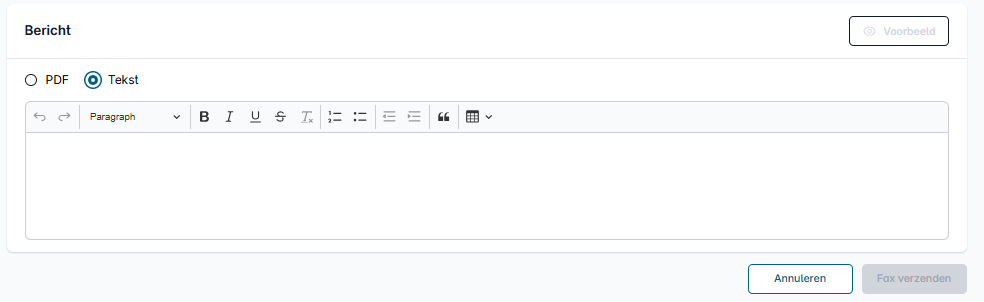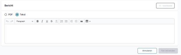 U kunt uw fax ook rechtstreeks in het klantenportaal schrijven en verzenden. U kunt de editor gebruiken om teksten te schrijven en zelfs tabellen in te voegen.