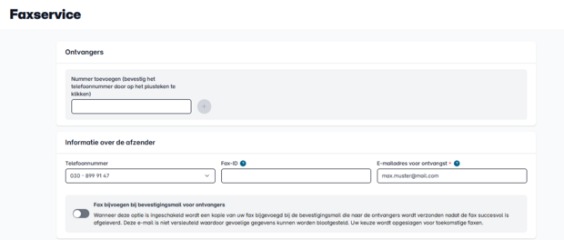 Nadat de fax via ons systeem is verzonden, ontvangt u per e-mail een verzendbevestiging en een kopie van de fax.