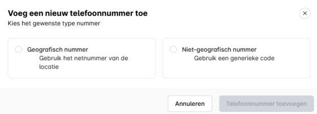 • Niet-geografisch nummer: Niet-geografische nummers hebben het netnummer 085 (voorbeeld +31 85 ..).
